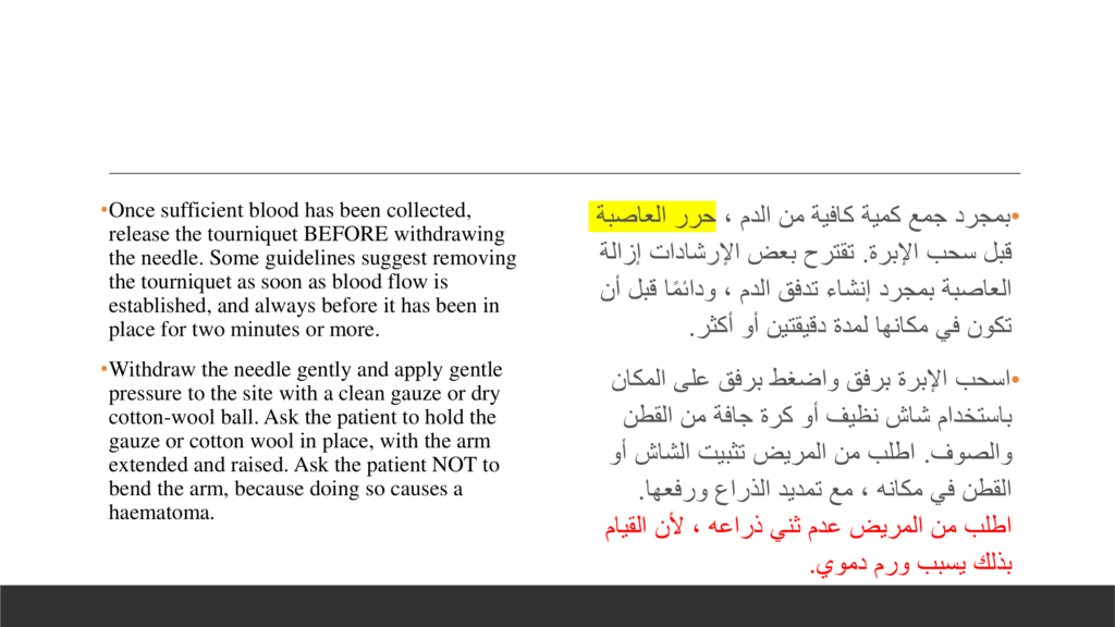 خطوات تفصيلية لأخذ عينات الدم
